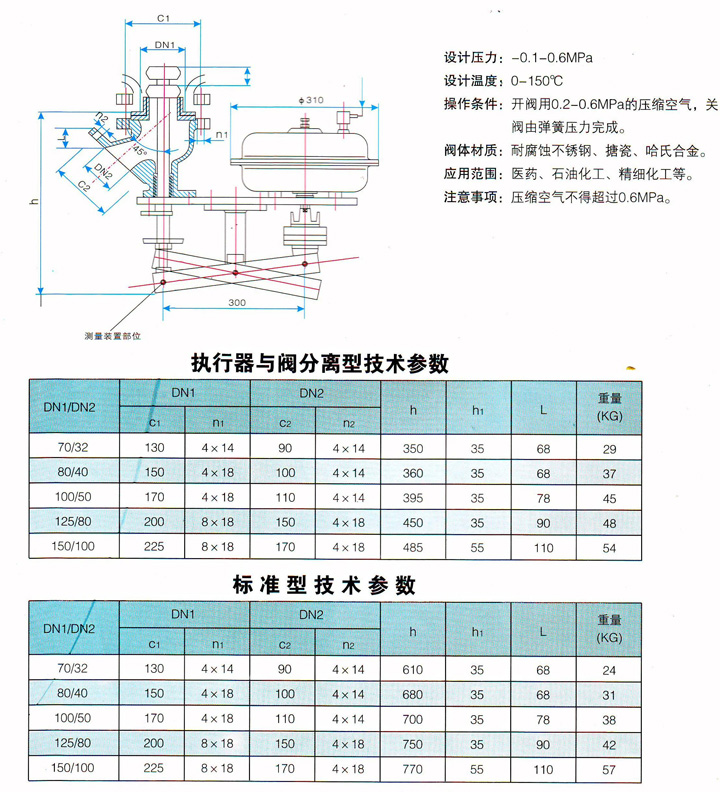 OF系列放料閥依執(zhí)行器與閥不同分標準型和分離型兩種